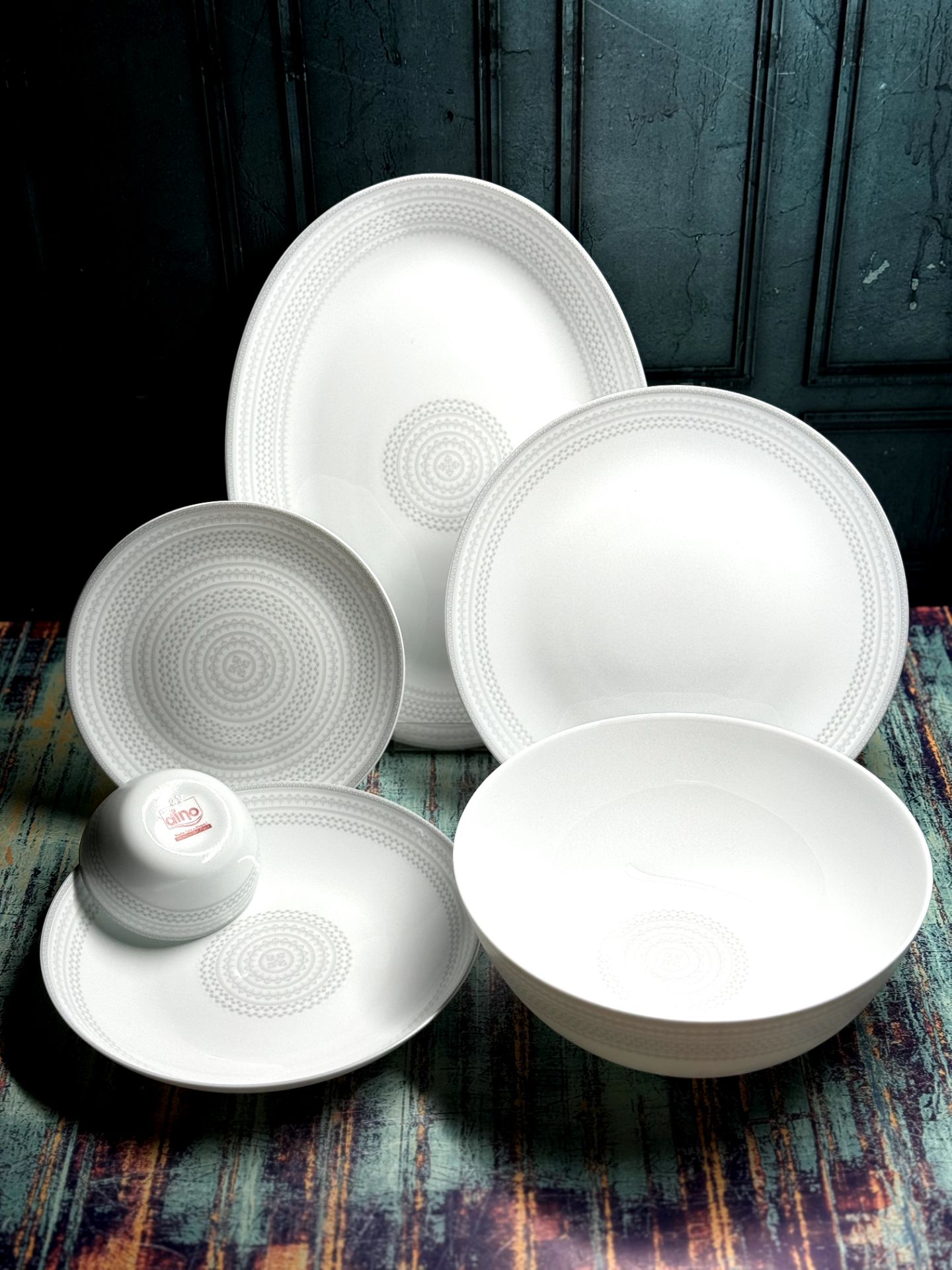سرویس غذاخوری آرکوپال 6 نفره - 26 پارچه تولید شرکت مقصود Dino 6 پلوخوری 6 خورشت خوری 6 پیش دستی 6 پیاله ماست خوری 1 عدد دیس و 1 عدد کاسه سالاد میباشد