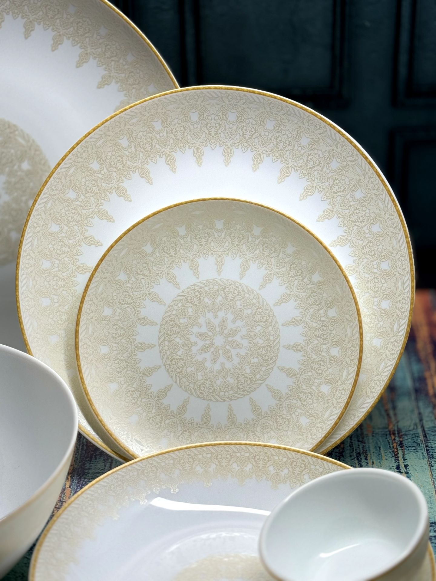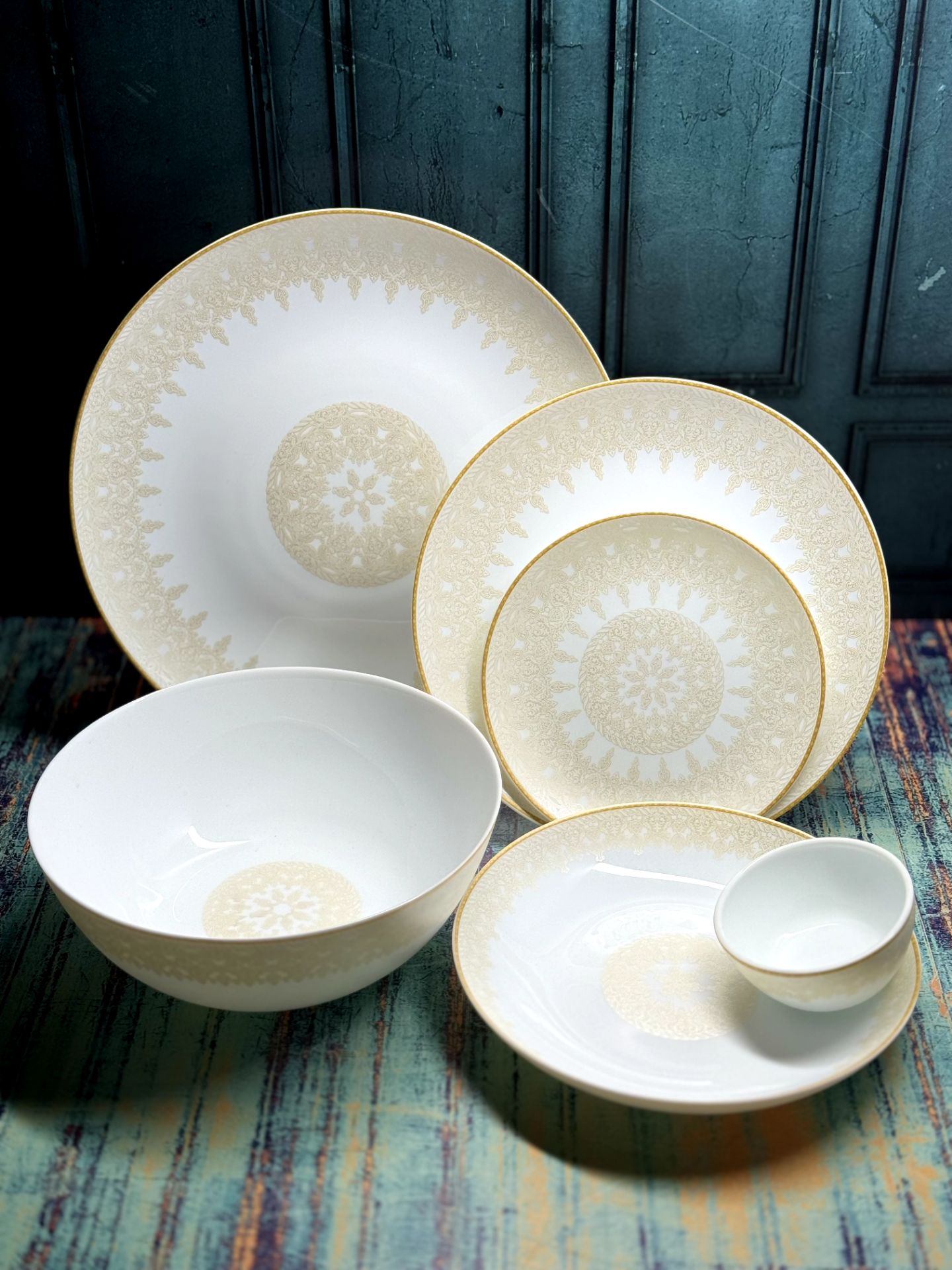 سرویس غذاخوری آرکوپال 6 نفره - 26 پارچه تولید شرکت مقصود برند Dino 6 پلوخوری 6 خورشت خوری 6 پیش دستی 6 پیاله ماست خوری 1 عدد دیس 1 عدد کاسه سالاد میباشد
